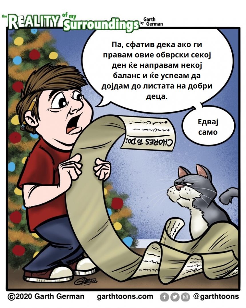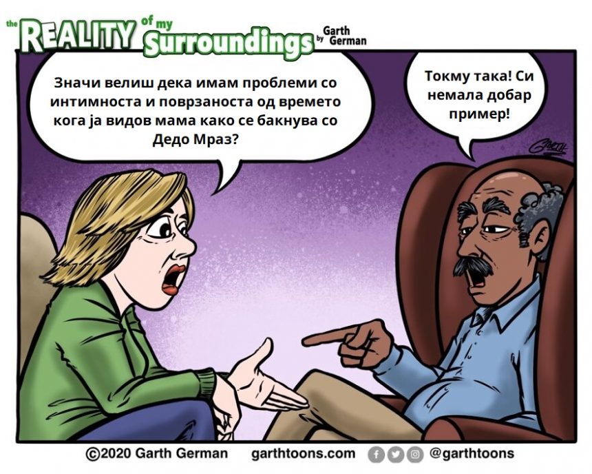 Секоја година, забавно е да се истражуваат различните аспекти на новогодишниот живот. Да бидеме реални, оваа 2020 ќе биде малку поразлична од другите. Гарт Герман е сопруг и ттако кој во слободно време сака да црта забавни и комични илустрации поврзани со секојдневието. Еве го неговото новогодишно издание.