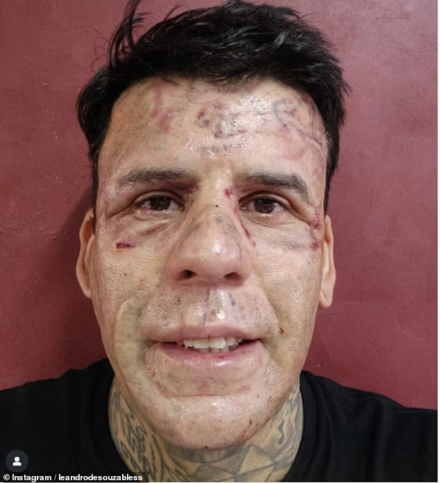 Леандро де Соуза од бразилскиот град Баже некогаш беше познат како најтетовираниот човек во Бразил, откако 95% од неговото тело беа покриени со мастило. Сега, по пет исклучително болни операции за отстранување на тетоважите, тој го покажа својот нов лик и, според многумина, доживеал вистинско чудо!