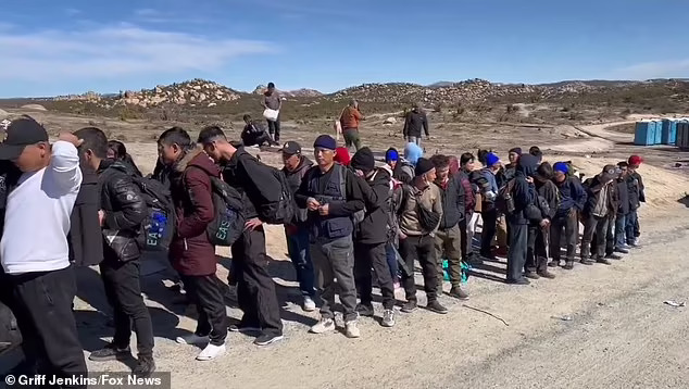 Десетици и веројатно и до стотици мигранти, ја преминале меѓународната граница, според Гриф Џенкинс од Fox News, кој ја снимил снимката.