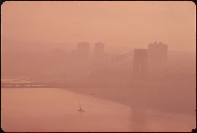 Пред да се донесе Законот за чист воздух во 1970 година, саѓи и смог го зафаќале Бирмингем, Алабама, поради што го добиле прекарот „Град на чад“. Оваа слика е направена во јули 1972 годинa.