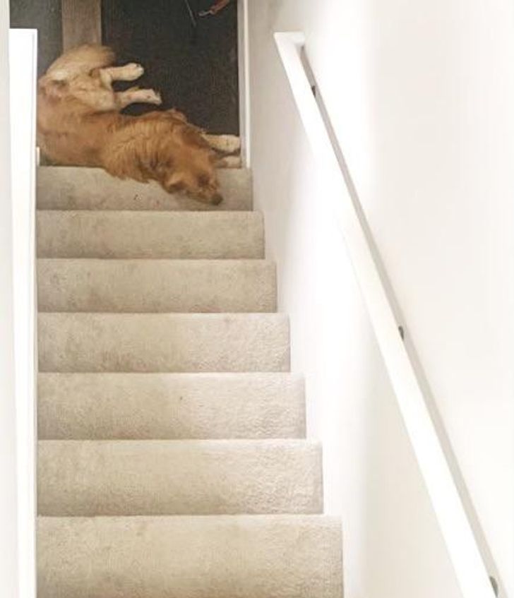 „Случајно направив слика од моето куче од чуден агол и не се знае дали е на врвот или на почетокот на скалите“.