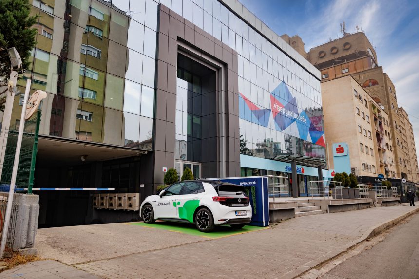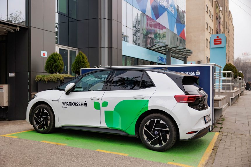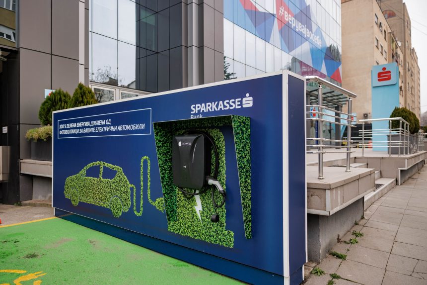Како дел од зелената транзиција што е во тек, Шпаркасе Банка набави службено електрично возило за потребите на своите вработени и истовремено постави полнач за електрични автомобили со 100% зелена енергија. Електричното возило е од марката Volkswagen ID 3, припаѓа на најновата генерација електрични автомобили со голема автономија и е CO2 неутрален, а ќе се користи од вработените при извршувањето на нивните дневни обврски.