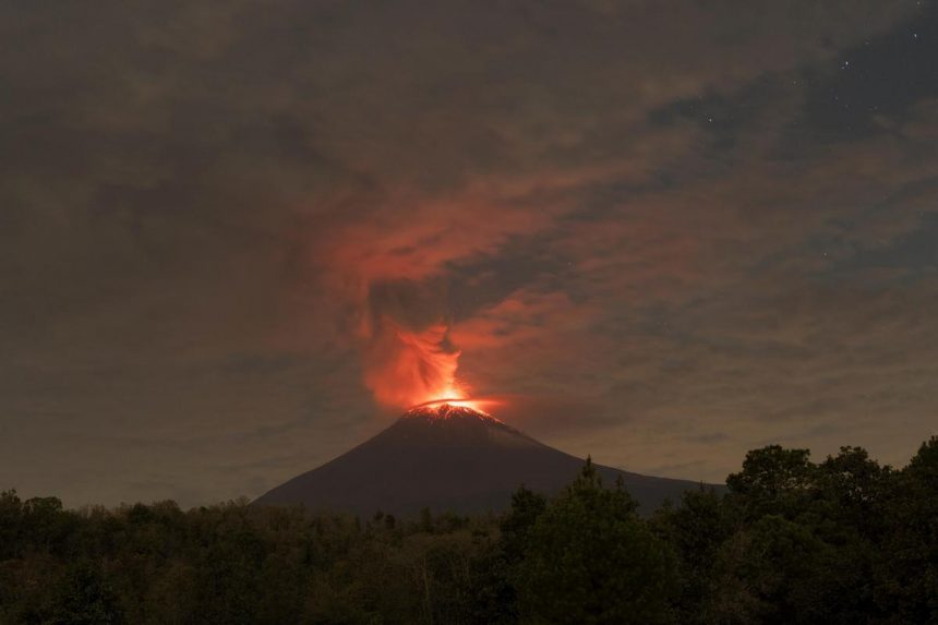 Спектакуларната ерупција на вулканот Попокатепетл го потресе небото на Мексико и локалните населби