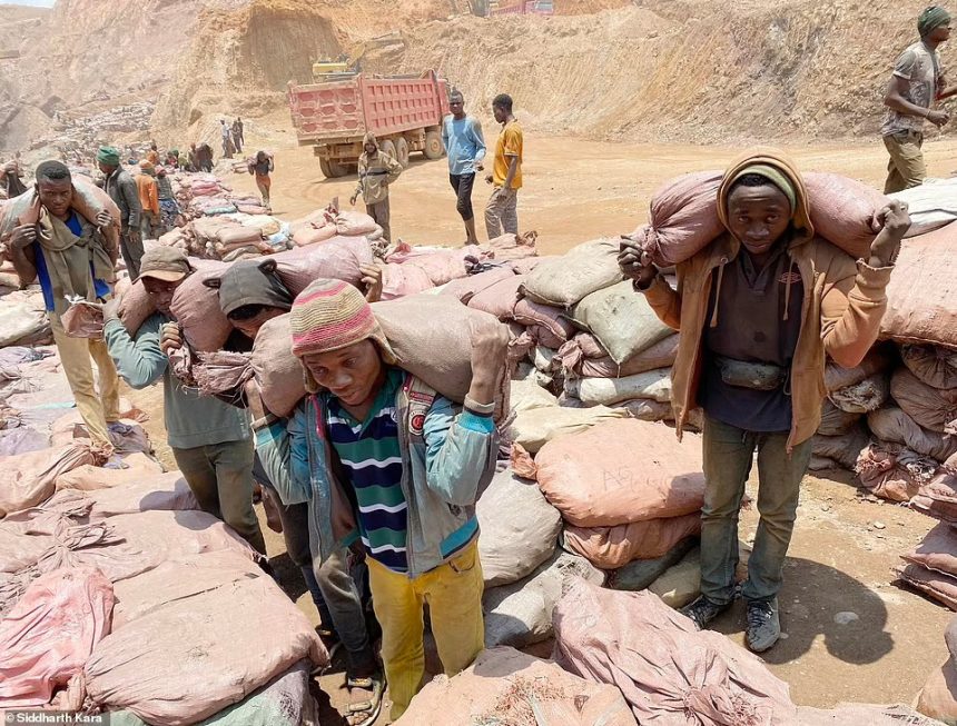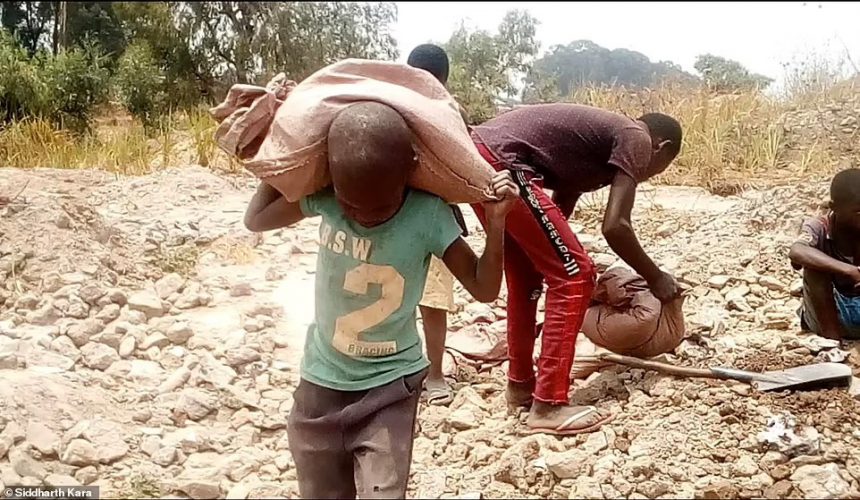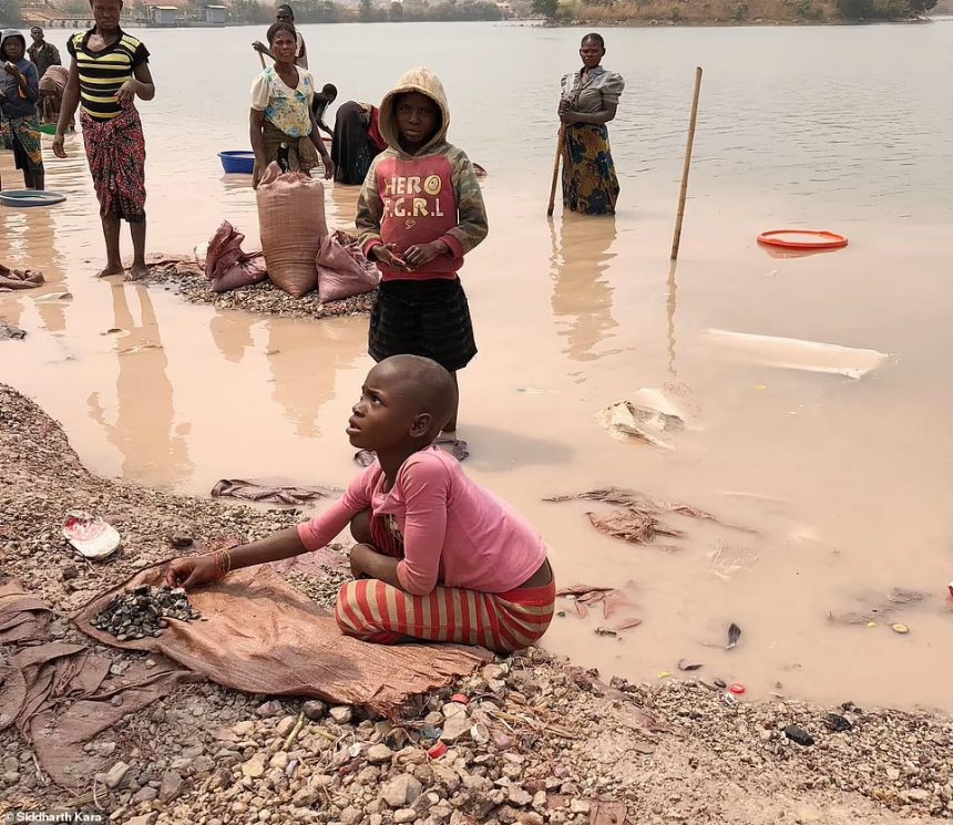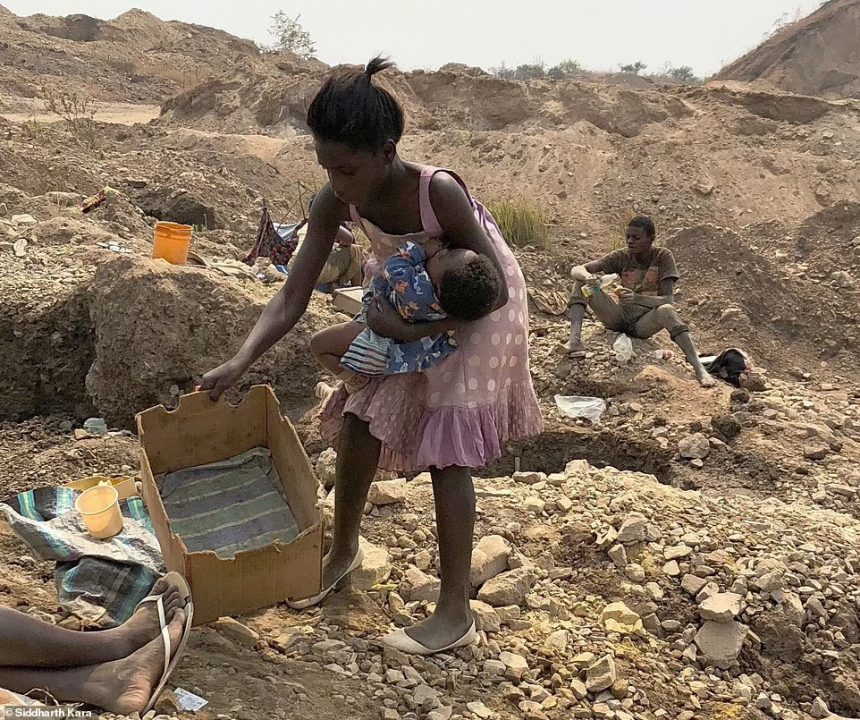 Боси деца покриени со хемикалии, кои бескрајно кршат камења работат за 2 долари на ден; исцрпени новопечени мајки со нивните бебиња врзани за нив, просејувајќи низ мрежи од камења со надеж дека ќе го најдат скапоцениот кобалт.