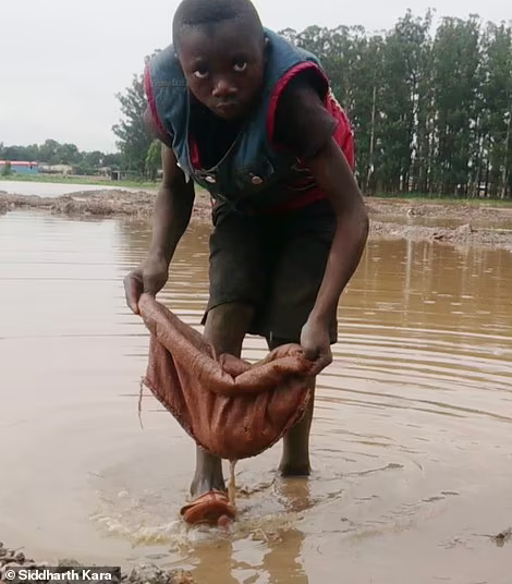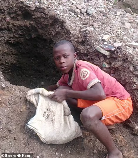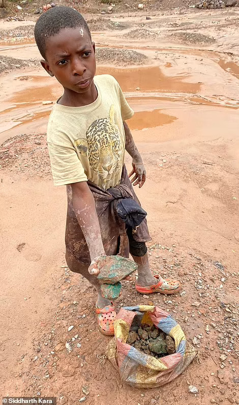 Меѓу неговите видеа е едно од двете деца, покриени со токсични хемикалии од рудникот, како ги кршат карпите. Тие не можат да бидат постари од седум или осум.
