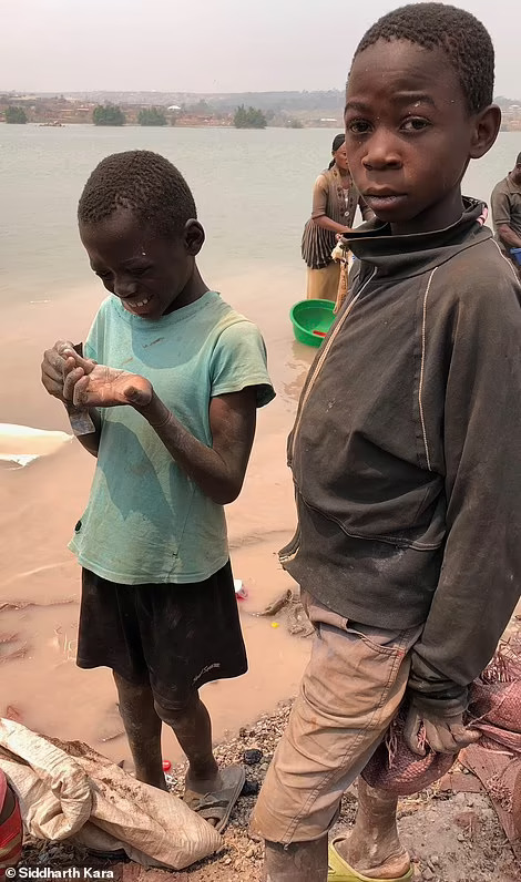 Меѓу неговите видеа е едно од двете деца, покриени со токсични хемикалии од рудникот, како ги кршат карпите. Тие не можат да бидат постари од седум или осум.