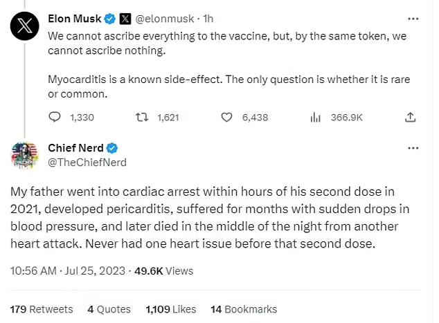 „Не можеме сè да и припишеме на вакцината, но, според истиот принцип, не можеме ништо да не ѝ припишеме. Миокардитисот е познат несакан ефект. Единственото прашање е дали се случува ретко или често“, напиша Маск како одговор на медиумскиот извештај во вторникот.