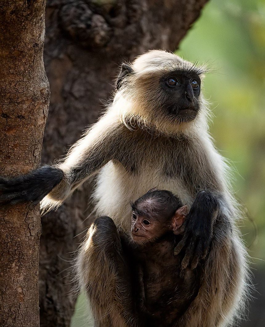 Тој рече: „Бевме на нашето вообичаено сафари и ги следевме тигрите во шумата. На патот видовме група мајмуни лангур како си играат на патот. Застанавме таму некое време и почнавме да ги набљудуваме нивните активности. Видов пар кој беше многу зафатен со своето новороденче. Успеав да фотографирам некои од најубавите моменти на љубов и грижа“.