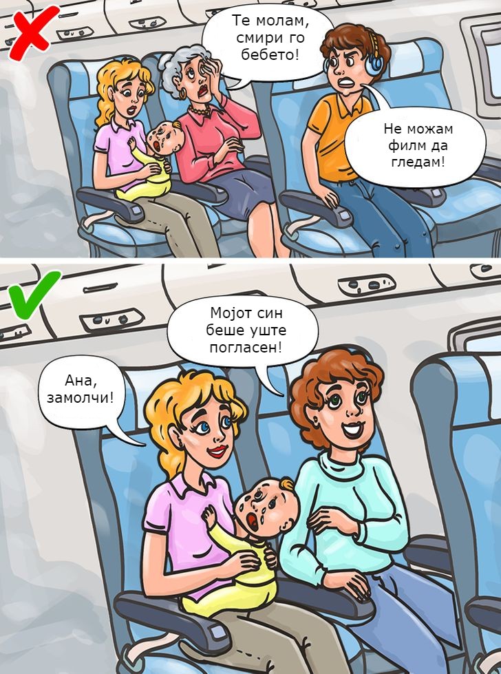 Децата се сепак само деца и да, понекогаш знаат да бидат немирни во јавност. Вие треба смирено да му објасните на вашето дете дека неговото однесување не е во ред. Немојте да се грижите за осудувачките коментари и погледи кои ги добивате од луѓето, на крај на денот вие сте родител и вие одлучувате на кој начин ќе го воспитате детето.