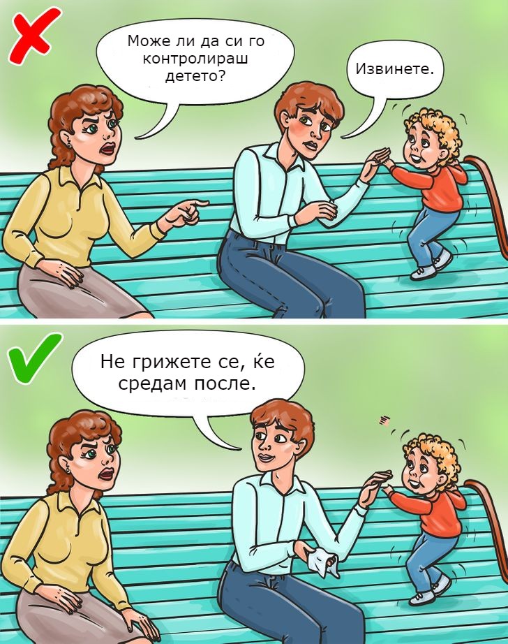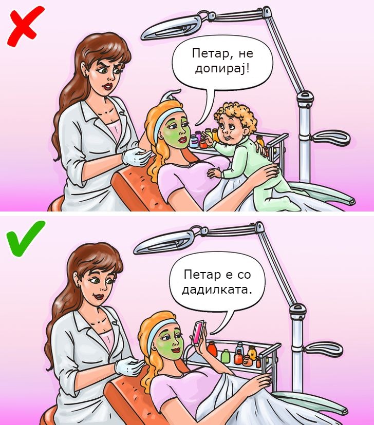 Родителите треба да се фокусираат на сопствените желби и препораките на експертите. Нема потреба да се земаат предвид мислењата на роднини, пријатели или непознати.