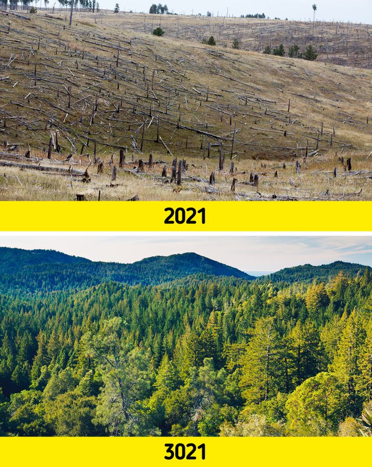 На силно оштетена дождовна шума и требаат повеќе од 4000 години за целосно да се обнови. Тоа е затоа што човековата активност го отежнува процесот на регенерација. Значи, ако луѓето не постојат на планетата, дрвјата и сите други растенија ќе растат многу побрзо.