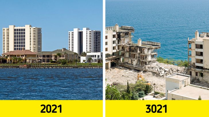 Градовите како Њујорк, Мајами и Њу Орлеанс веројатно би биле под вода. Врз основа на денешните податоци, сите овие градови би доживеале екстремен пораст на нивото на водата до 2070 година. Но, без луѓе вакво нешто може да се случи побрзо.