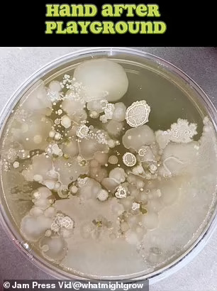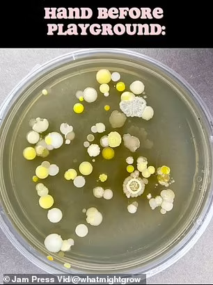 Тим Кол (32) од Јута откри како илјадници бактерии можат да се најдат како демнат на рацете на децата по само еден час на игралиштето.