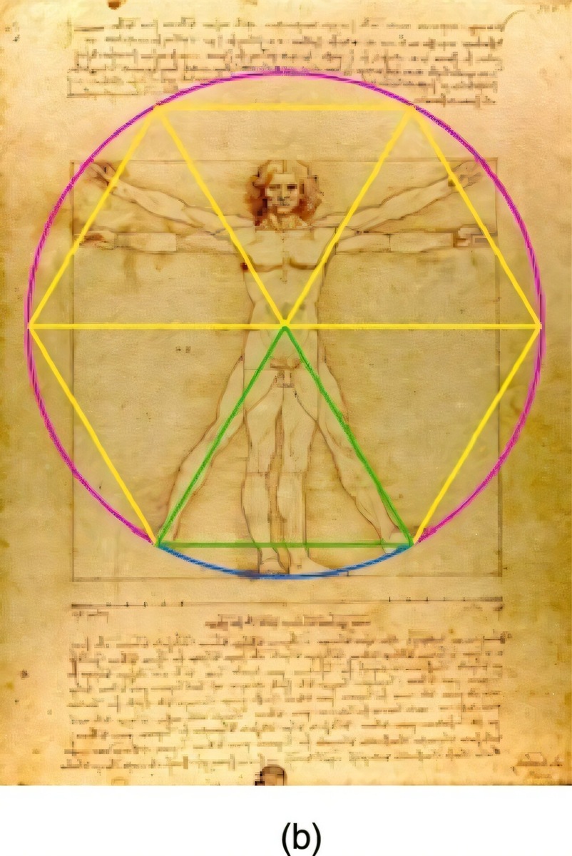 Лондонскиот стоматолог Рори Мак Суини забележал нешто што сите други го пропуштиле: рамностран триаголник формиран од долниот дел на нозете, запишан и обележан од самиот да Винчи. Овој триаголник е идентичен со триаголникот Бонвил, познат од анатомијата на вилицата. Овој детал, досега незабележан, ги поврзува уметноста, медицината и природата.