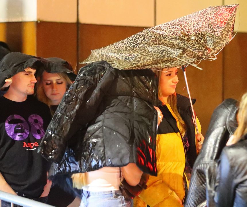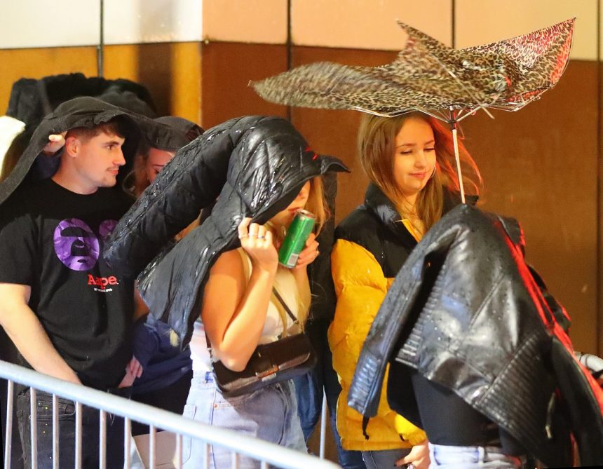 Во Манчестер, клаберите стоеја во ред со нивните чадори свртени навнатре додека ветрот ги мавташе.