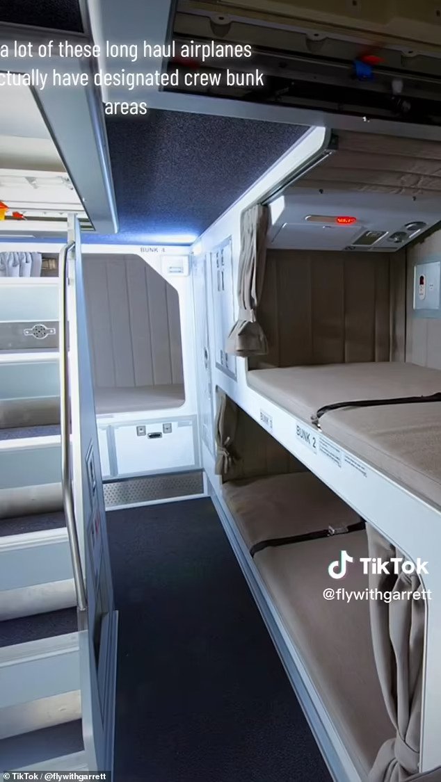 При прикажувањето на фотографија од таен оддел за спиење на персоналот во авион, Гарет продолжува: „Само да биде јасно, пилотите не спијат на палубата за летање на долги летови. Всушност постои нешто што се нарекува зголемен летачки екипаж што значи дека има повеќе од само двајца пилоти на палубата за летање. Пилотите всушност наизменично одат на одредено место за одмор. Многу од овие авиокомпании на долги релации всушност имаат одредени места на спрат за екипажот кои не се во видното поле на патниците“.
