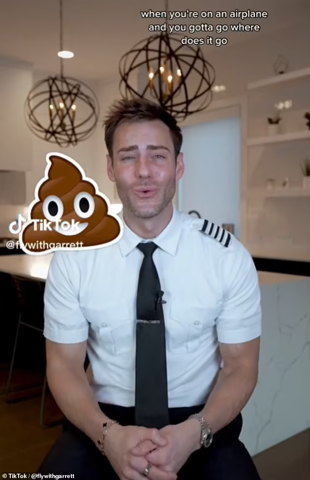 Гарет (29) од Северна Каролина има собрано повеќе од 600.000 следбеници на Инстаграм и сличен број на ТикТок, со неговите објави детално опишани за животот зад сцената како пилот на комерцијална авиокомпанија. Во едно од неговите неодамнешни видеа, Гарет се осврнува на „каде оди изметот во авионите“ и вели дека додека многу луѓе мислат дека е фрлен во текот на летот „на населението долу“, тој всушност „минува низ водовод до задниот дел на авионот“. Потоа, кога авионот ќе слета, копнениот екипаж го отстранува акумулаторот на тоалетот преку цевки.