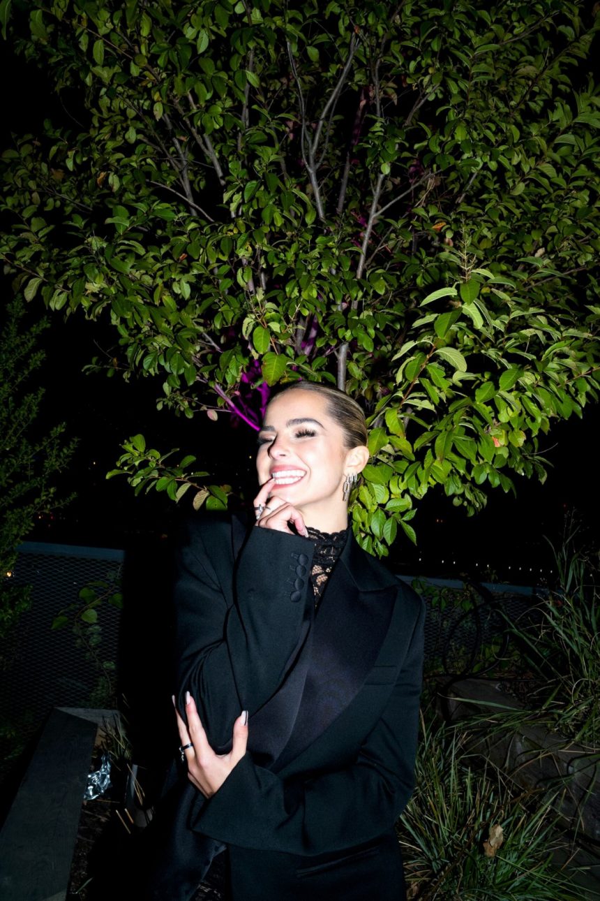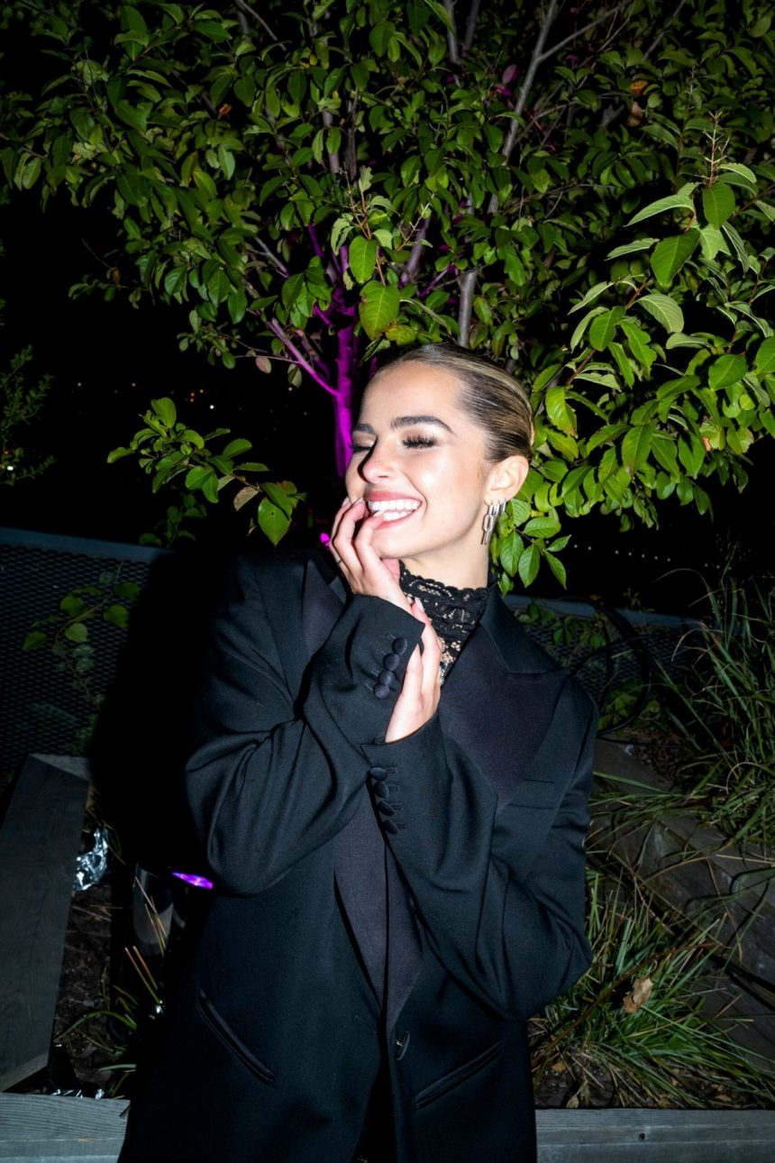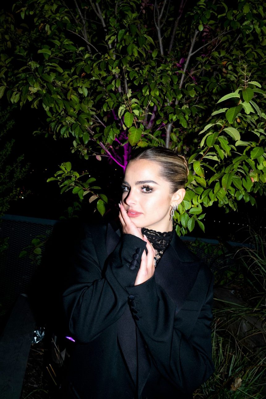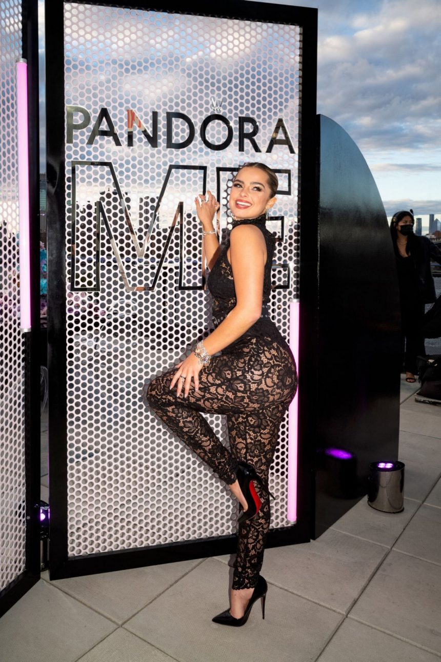 20-годишната американска пејачка, личност на социјалните мрежи, танчерка и актерка Едисон Реј во комбинезон со тантела на презентацијата на новата колекција Пандора Ми во Њујорк.