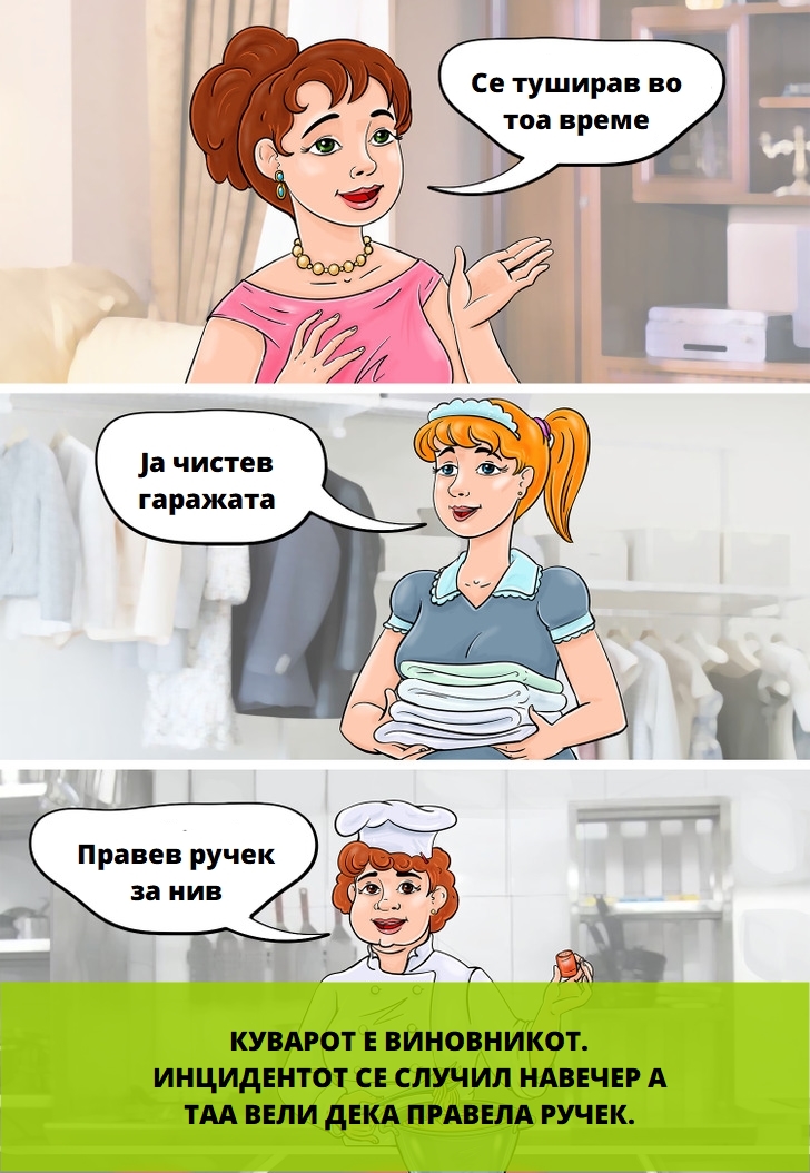 Сите сакаме да гледаме мистерии и детективски филмови и серии. Најмногу нѐ возбудува моментот кога се обидуваме пред главниот лик да ги разоткриеме настаните. Овие загатки ви го нудат токму тоа, станете и самите детективи и откријте ги мистериите.