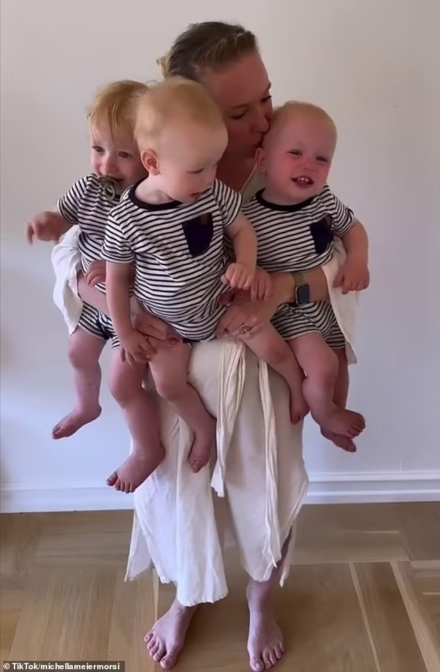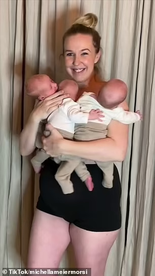 Мишела Мајер-Морси веќе имала ќерки близначки кога ги родила тројките, Чарлс, Теодор и Габриел, пред 17 месеци. Мишела објавува видеа од нејзиниот „хаотичен“ живот со близнаци и тројки на интернет и сподели видео од нејзината бременост со нејзините синови.
