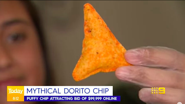 Доритос доделува 20.000 долари на тинејџерка која открила надуена верзија на типично рамниот тортилја чипс. Ова е само затоа што девојката одлучила да го стави на аукција.