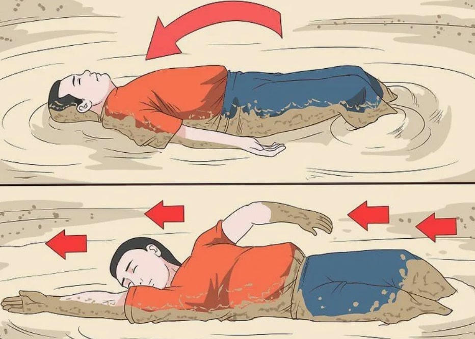 За да избегнете длабоко потопување, неопходно е да се зголеми површината на контакт со површината на песокот: треба да отстраните тешки предмети, да легнете на грб и полека да ги ослободите нозете, а потоа треба да се превртите на стомакот и внимателно, ползејќи, тргнете се од опасната зона.