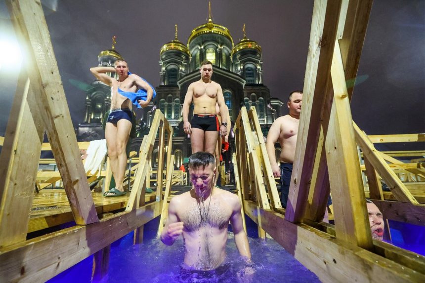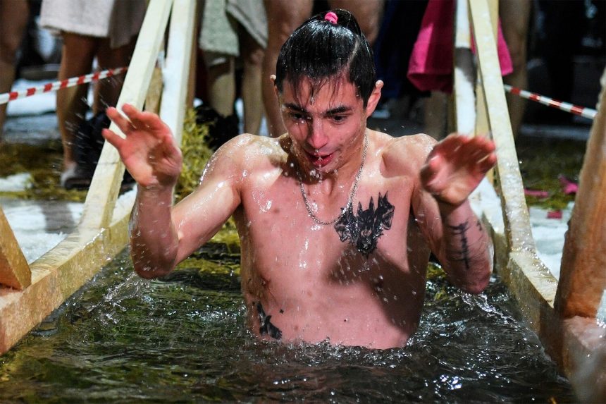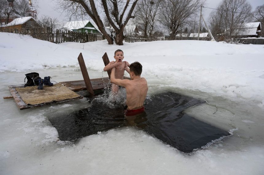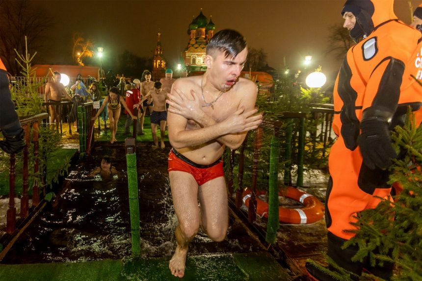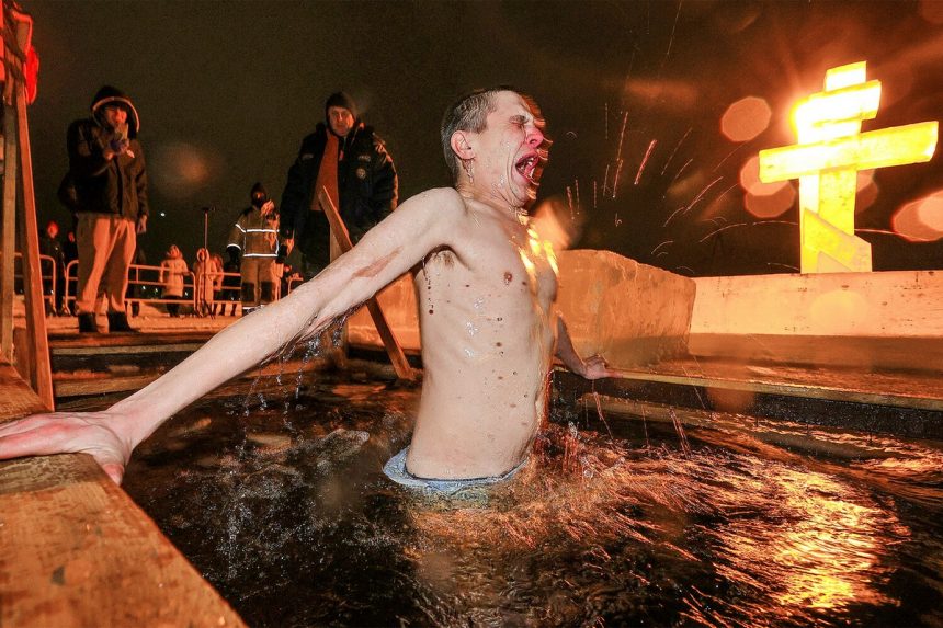 Нивната традиција не е да го фатат крстот, туку да се искапат за здравје. Да не ве потсетуваме дека времето таму е многу постудено од кај нас.