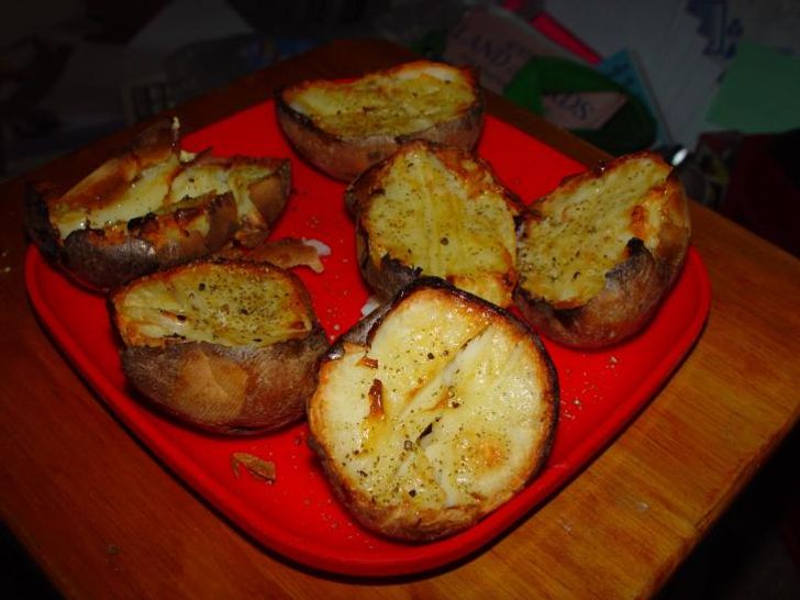 За да не печете компири во рерна 1 час, можете да ја користите микробрановата печка. 5 минути во микробранова печка и 15 минути во рерна.