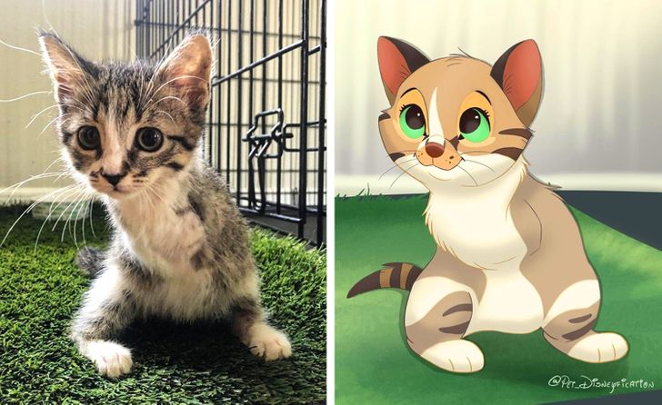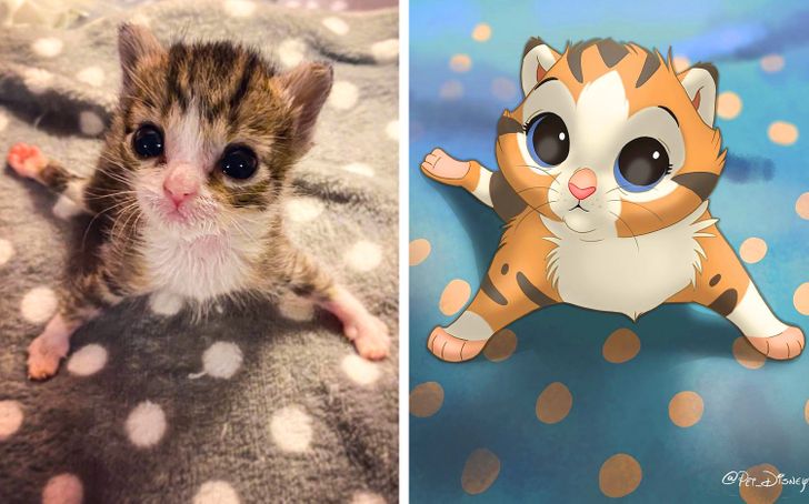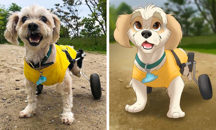Иса, попознат како Pet Disneyfication на Инстаграм, е многу талентиран уметник кој ги претвора вашите миленици во волшебни ликови на Дизни. Нејзината работа не се фокусира само на домашни миленици совршени за сликање. Исто така, таа покажува дека животните кои се родени различни или претрпеле повреди се исто толку слатки и симпатични како и другите, и тие исто така заслужуваат да бидат ликови на Дизни.