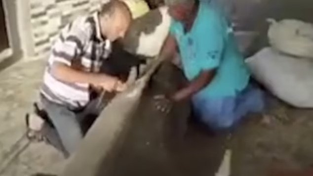 Видеото покажува дека телото на ајкулата е оперирано од специјалисти, со устата наполнета со бел материјал. Се чини дека еден маж прави засеци, додека друг ја проверува цврстината на кожата.