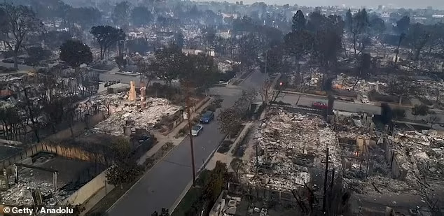Погледот од височина ги покажува некогаш раздвижените населби уништени – раскошни домови срамнети со земја, улици прекриени со саѓи и уништена вегетација. Во четвртокот, монструозните пожари стигнаа до богатите предградија Калабасас и Хиден Хилс, дом на познати личности како Кардашијан.
