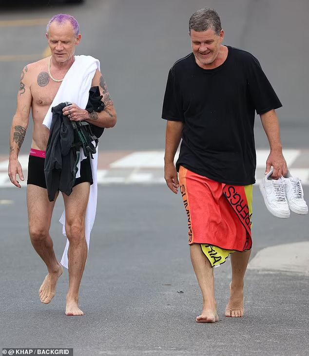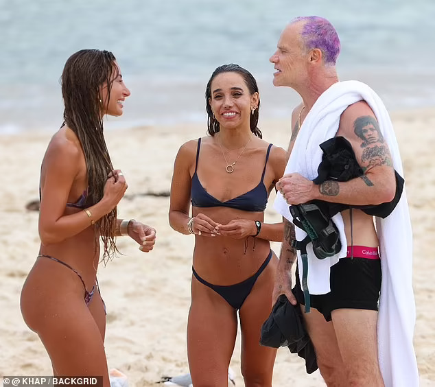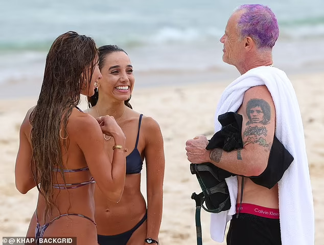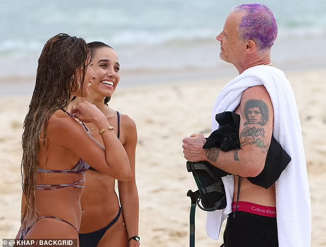 ВЕЧЕН ЗАВОДНИК: Басистот на „Red Hot Chilli Peppers“, Флеј, флертува со згодни девојки на плажа во Австралија во малку необичен костим за капење…
