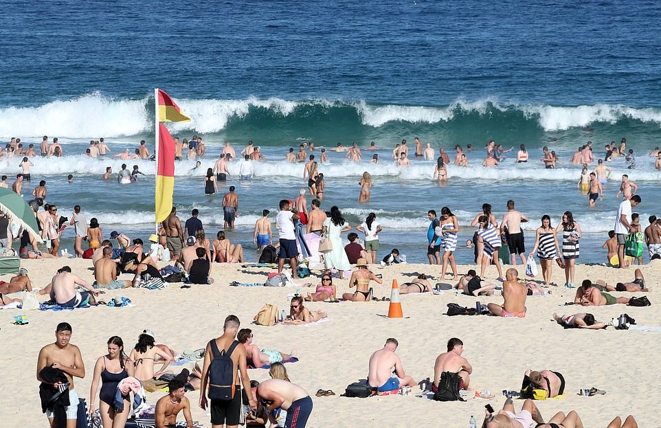 Стотици Австралијци беа забележани како сурфаат и пливаат на познатата плажа Бонди во Сиднеј, пред да одат за јадење во блиските пабови и ресторани.