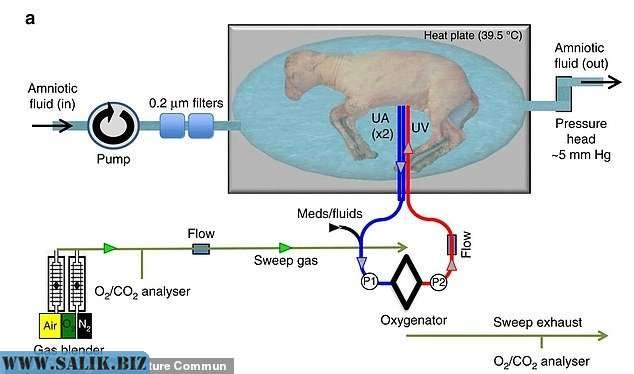 Бебето, сместено во вештачка матка, прво преку папочната врвца е поврзано со таканаречен оксигенатор, кој циркулира крв. Системот, исто така, му овозможува на бебето да дише и да голта амнионска течност, како што се случува во нормална матка.