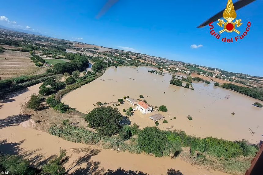 Поројни поплави го погодија централниот италијански регион Марке во четвртокот вечерта, при што загинаа најмалку 10 лица, 4 се водат за исчезнати, а 50 се повредени. Силните временски услови предизвикаа хаос во крајбрежниот град Анкона — главниот град на регионот — и селата околу него, при што паднаа повеќе од 40цм дожд за два часа. За неколку часа, регионот беше преплавен со количината на врнежи што вообичаено ги добива за шест месеци, соопшти државната телевизија.