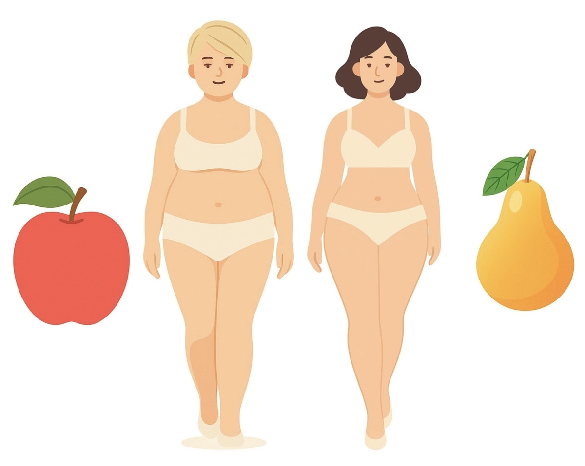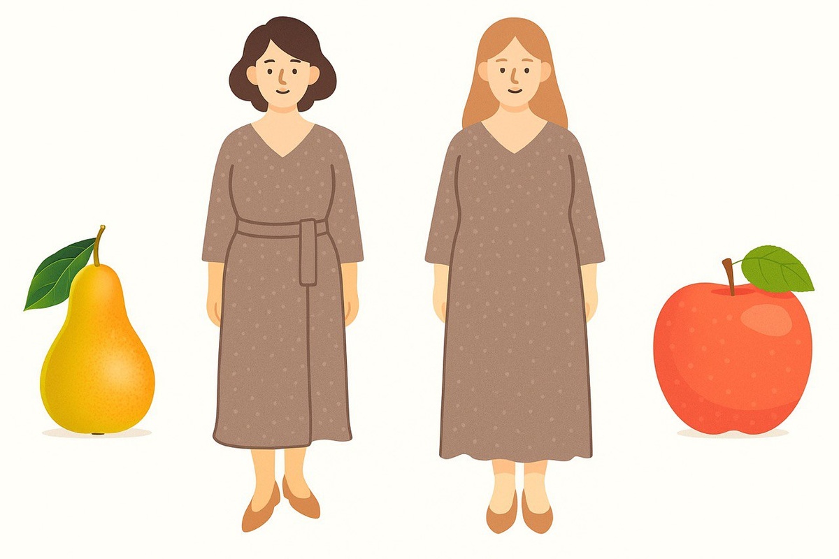 Стомакот не изгледа еднакво кај сите – и пристапот за негово маскирање зависи од формата на телото. Кај фигура „круша“, стомакот е сместен под половината, а половината останува изразена. Овој тип има нагласени колкови и понежно оформен горен дел. Кај „јаболко“ стомакот е повисок, половината слабо видлива, а тежиштето е во горниот дел од телото.