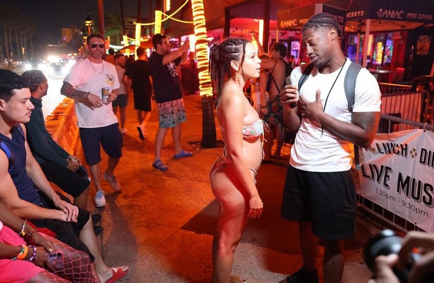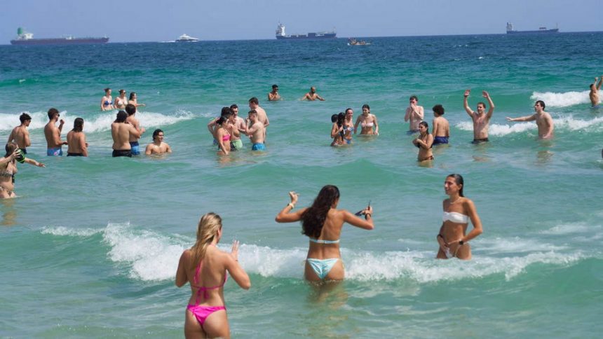 Групи девојки облечени во бикини и момци се собраа на преполните плажи во градот, лоцирани на само 15 километри од Мајами Бич, за да уживаат во сонцето.