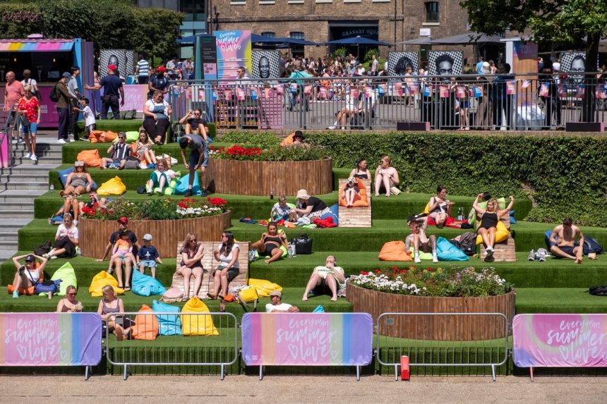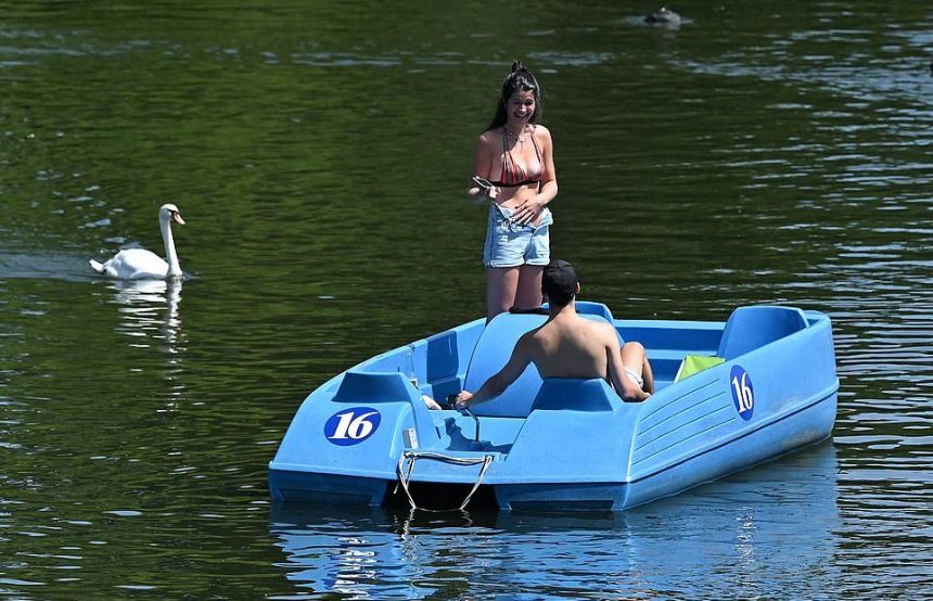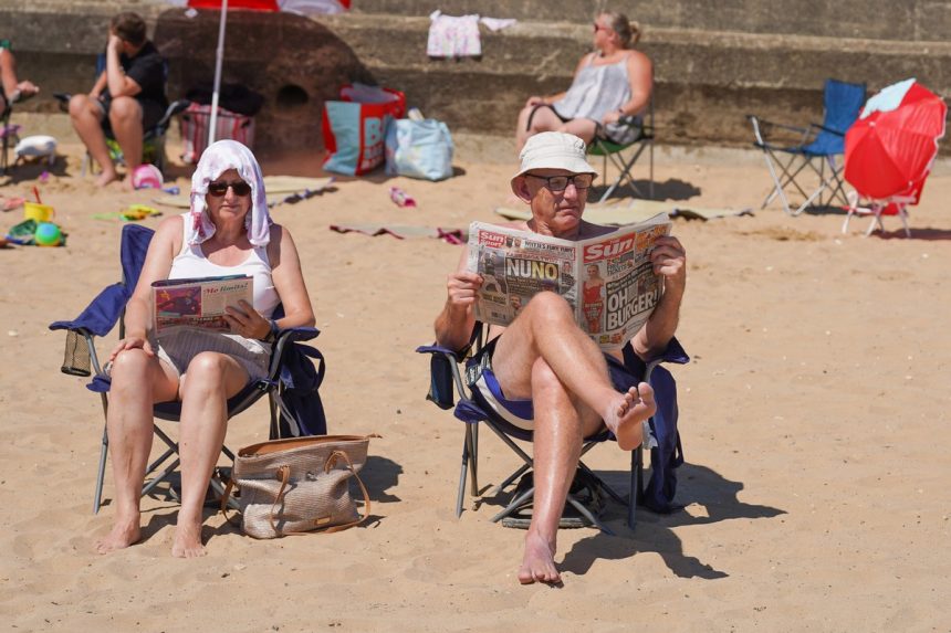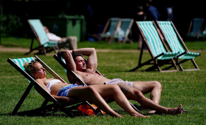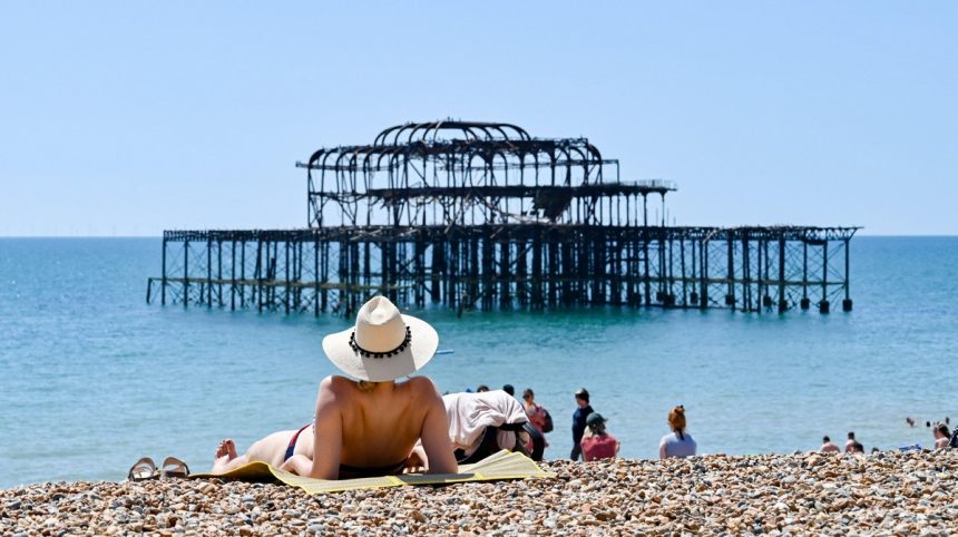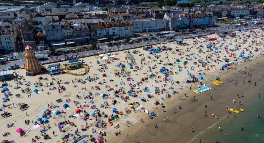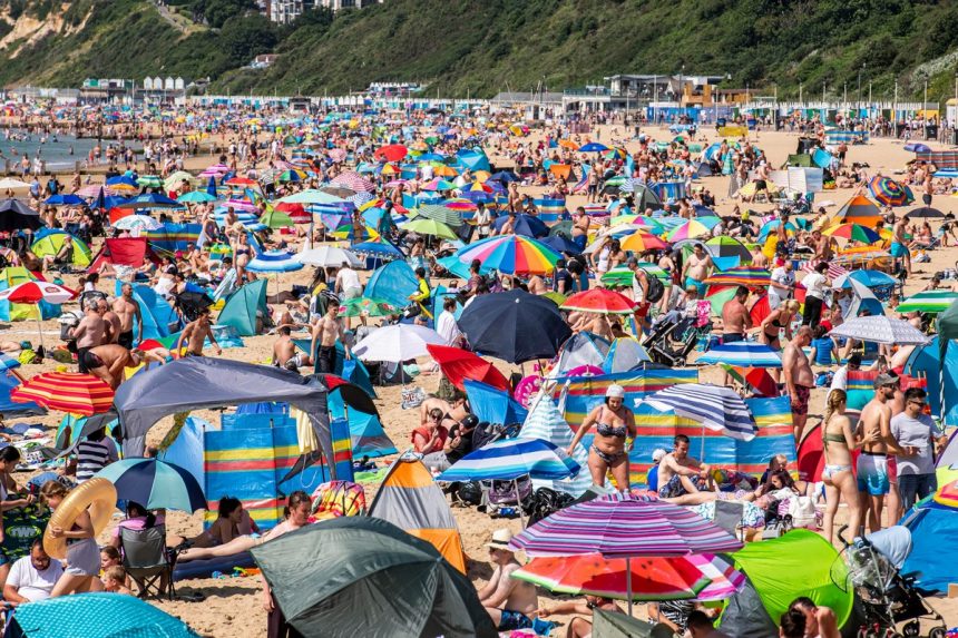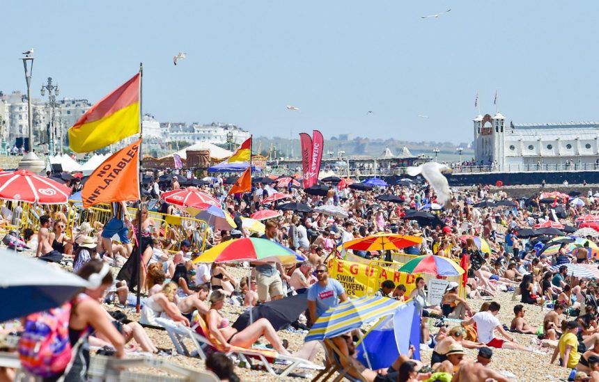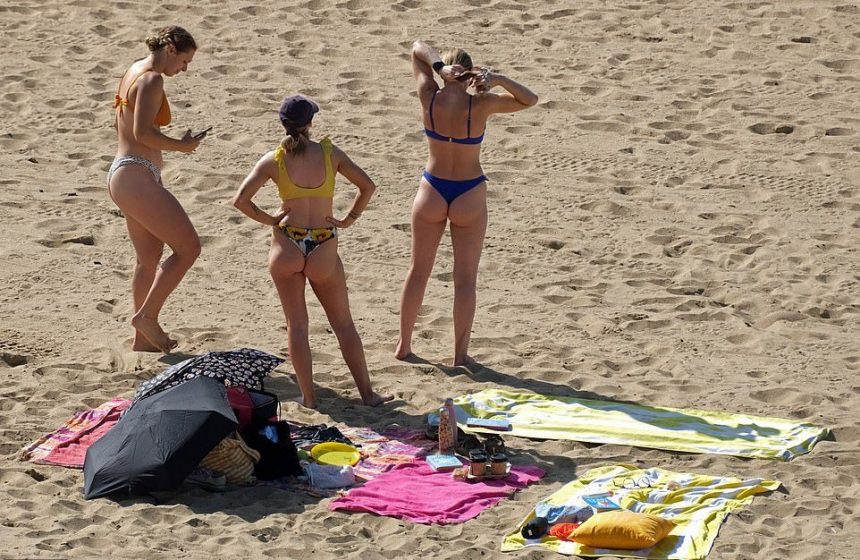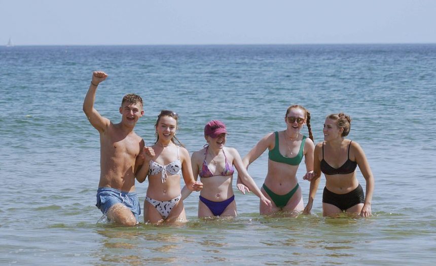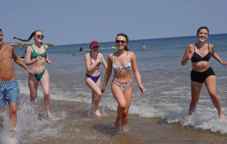 Британците, изгладнети од сонце, вчера можеа да прошетаат на 32 ° C додека продолжува горливата топлина. Толпа луѓе се насобра на плажите од 7 часот наутро во саботата, кога жештината ги погоди бреговите на Велика Британија директно од Азорските Острови, што го прави најжешкиот ден во годината досега.
