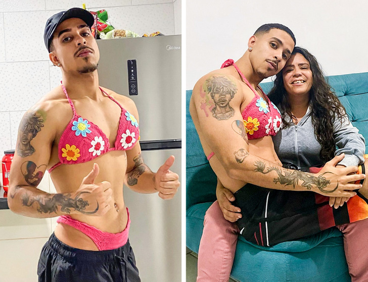 Тиаго Панталеао е инфлуенсер кој има речиси 400.000 следбеници. Тој објави неколку фотографии на својот профил облечен со рачно изработените бикини на мајка му, покажувајќи ја неговата несебична поддршка кон нејзиниот мал бизнис