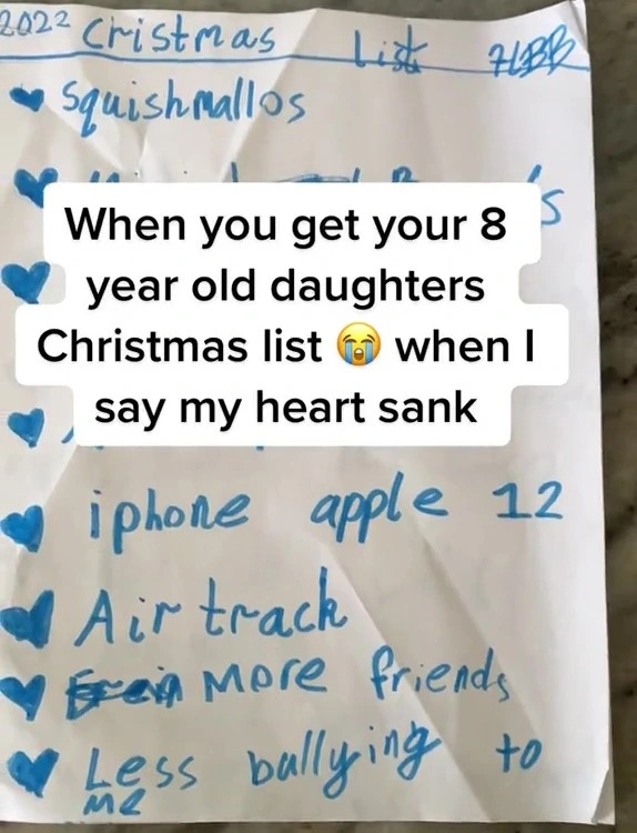ЖАЛНО, НО ВИСТИНИТО: Мајка останала запрепастена откако го видела божиќниот список со желби на ќерка си. Погледнете за што се работи…