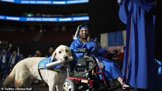 Услужно куче на студент од Њу Џерси доби своја сопствена универзитетска диплома откако ги посетувало сите часови заедно со неговата сопственичка.