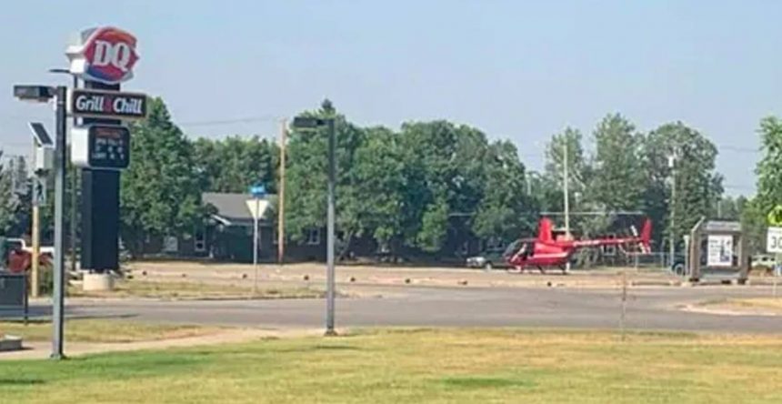 Но ова решени изгледа е сосема логично за пилот од градот Лерој во Саскачеван, Канада, бидејќи ги оставил збунети жителите во градот Тисдејл, откако ја искористи својата лиценца за хеликоптер за да пренесе патник до продавницата за сладолед.