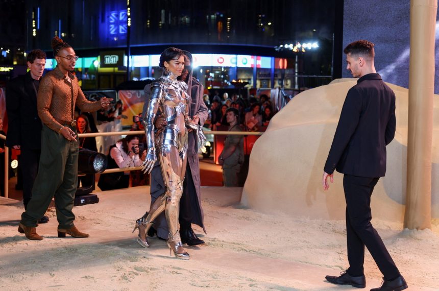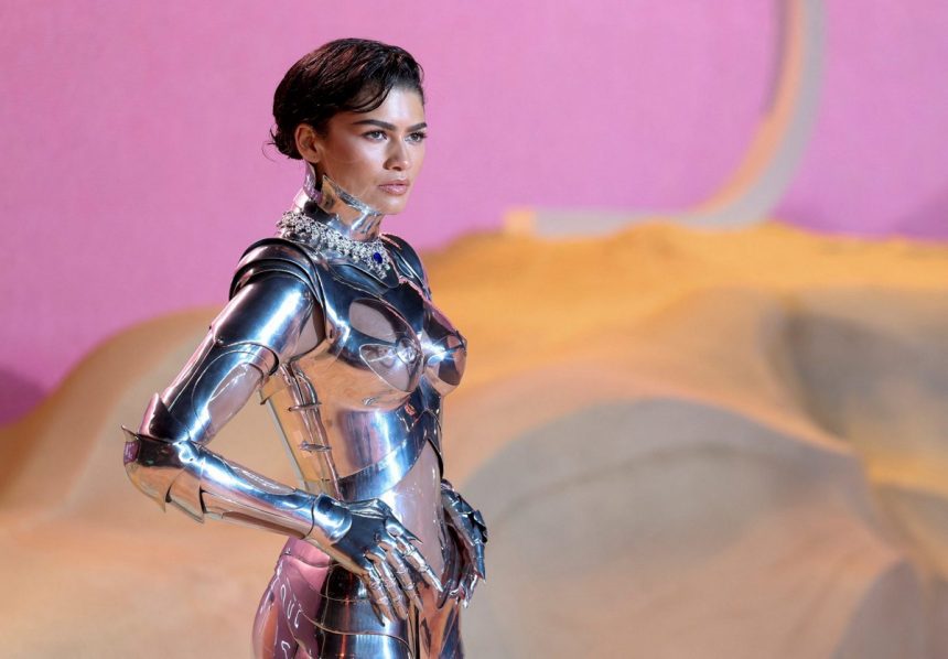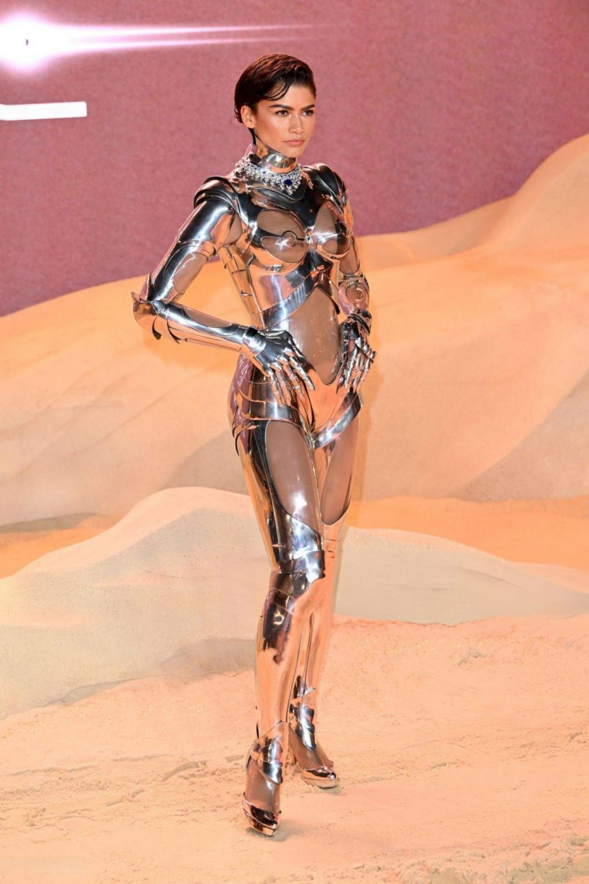 27-годишната американска актерка, пејачка, танчерка и модел Зендаја во екстравагантно издание на премиерата на филмот „Dune: Part Two“ во Лондон.