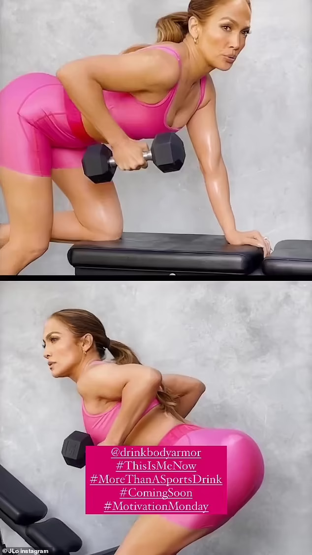 „Ова е повеќе од спортски пијалок“, напиша таа на видеото на кое вежба во теретана. На новите слики Лопез изгледаше многу мускулесто и го покажа нејзиниот стомак. Косата и беше врзана во опавче и беше нежно нашминкана.