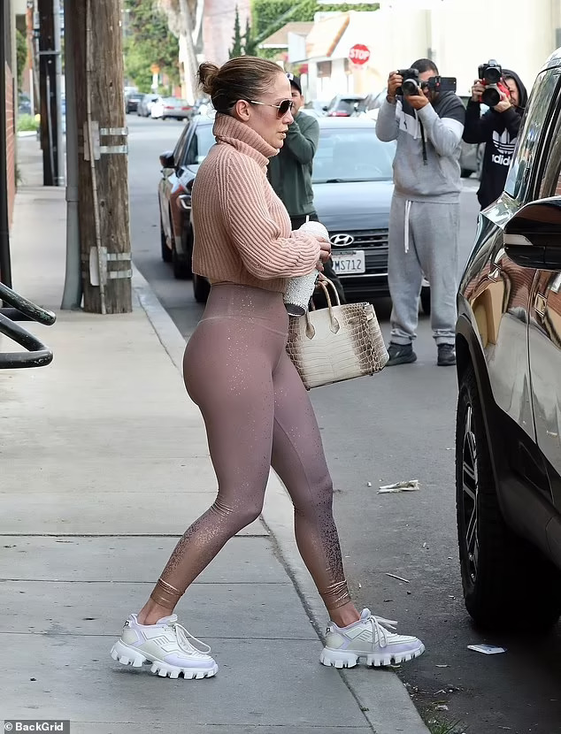 Џенифер Лопез отсекогаш била позната по својата фигура. Во четвртокот таа беше лежерно облечена во хеланките од „Beyond Yoga“ и џемпер. Таа го напушташе студиото за вежбање на Трејски Андерсон каде што собите се чуваат на 95 степени за да се ослободат од токсините и да се подобри еластичноста на кожата.