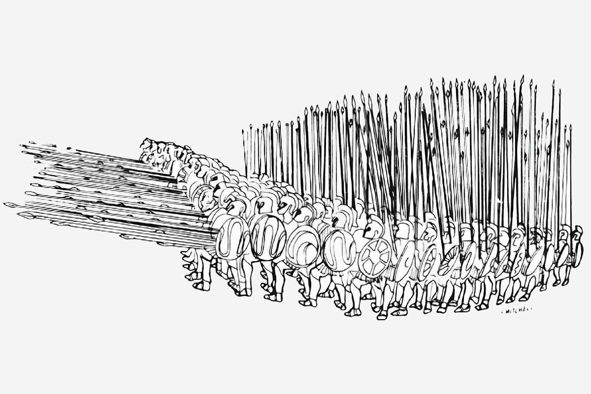 Филип Втори го подигна воениот рок во Македонија на статус на „постојана окупација“. Тука е измислена и познатата пешадиска формација, македонската фаланга. Системот претпоставувал издигнување на долги копја на одреден степен. Конвенционално, првиот ред ги става копјата напред и под прав агол, вториот – под остар агол, третиот – на 90 ° (всушност, има многу повеќе редови). Овде, во Македонија, беше подобрена координацијата на сите видови трупи.