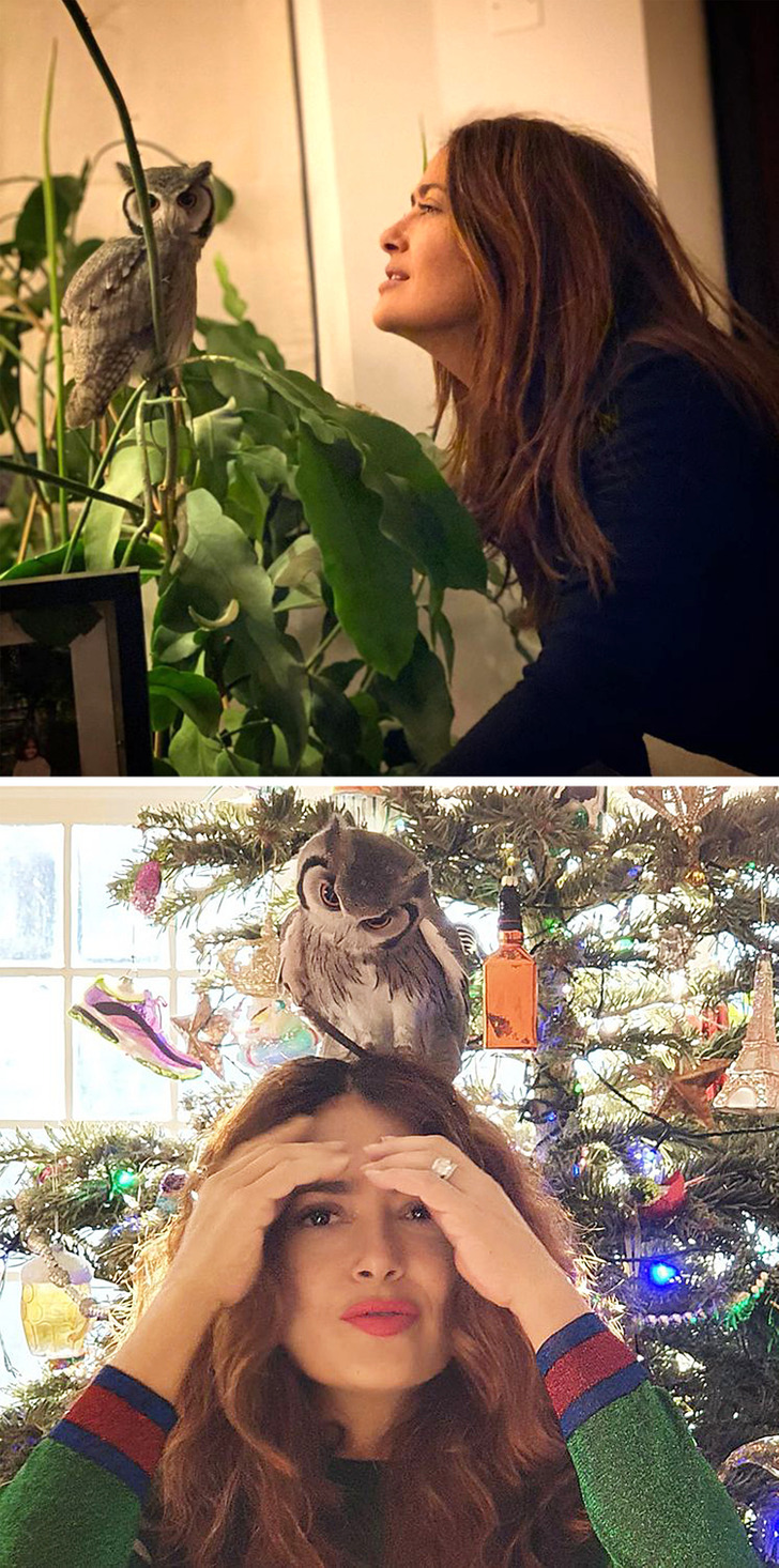 Салма му го подарила бувот на својот сопруг за Денот на вљубените. Сепак, тој веднаш рекол: „Разбирам дека ова е повеќе подарок за тебе отколку за мене“. Актерката го нарече миленикот Керинг и вели дека бувот е многу љубопитен, сака да седи на главата на Салма или на таблетот.